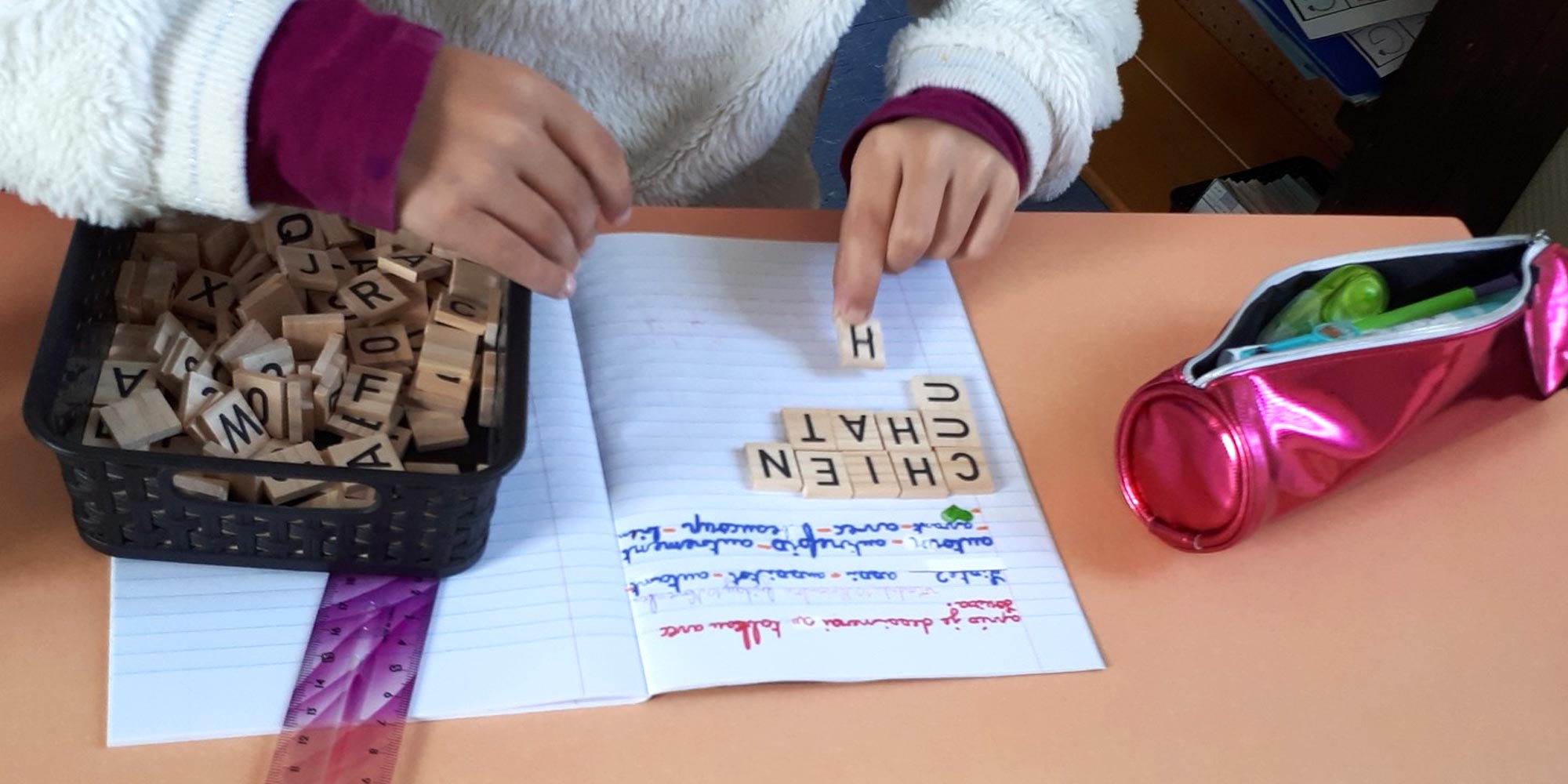 Les apprentissages se déroulent sur 4 jours de 9h15 à 16h30. Le matin, nous travaillons seul ou en groupe sur les apprentissages fondamentaux, et l’après-midi, nous faisons des ateliers: jardin, couture, promenade en forêt, sport, menuiserie.